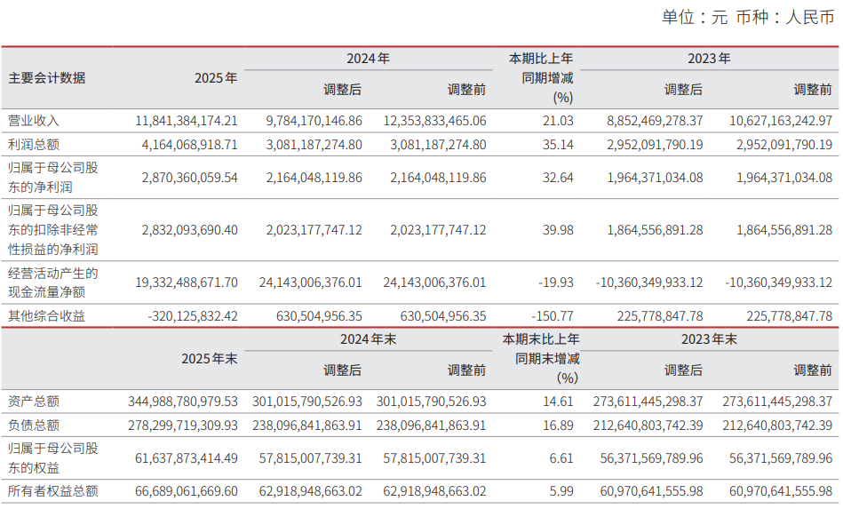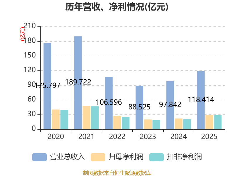 中证智能财讯兴业证券(601377)3月28日败露2025年年度陈说。2025年,公司已毕买卖总收入118.41亿元,同比增长21.03%;归母净利润28.7亿元,同比增长32.64%;扣非净利润28.32亿元,同比增长39.98%;筹画四肢产生的现款流量净额为193.32亿元,同比下落19.93%;陈说期内,兴业证券基本每股收益为0.3161元,加权平均净资产收益率为4.93%。公司2025年度分派预案为:拟向整体鼓吹每10股派现1元(含税)。