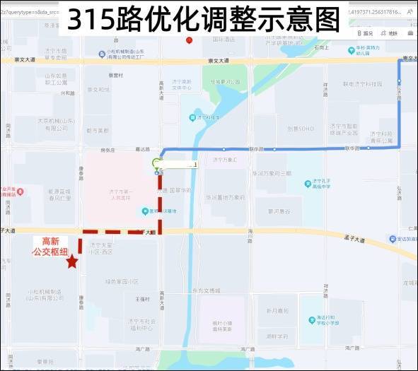 315路:高新公交关节发车,沿康泰路向北至孟子大路,沿孟子大路向东至高新大路,沿高新大路向北插足原清亮运营至绝顶站。调遣后新增:东说念主民病院东院区东、东说念主民病院东院区、高新公交关节共3站。